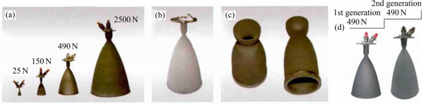 图 1 我国第一代和第二代发动机推力室及燃烧室实物图[37-39]