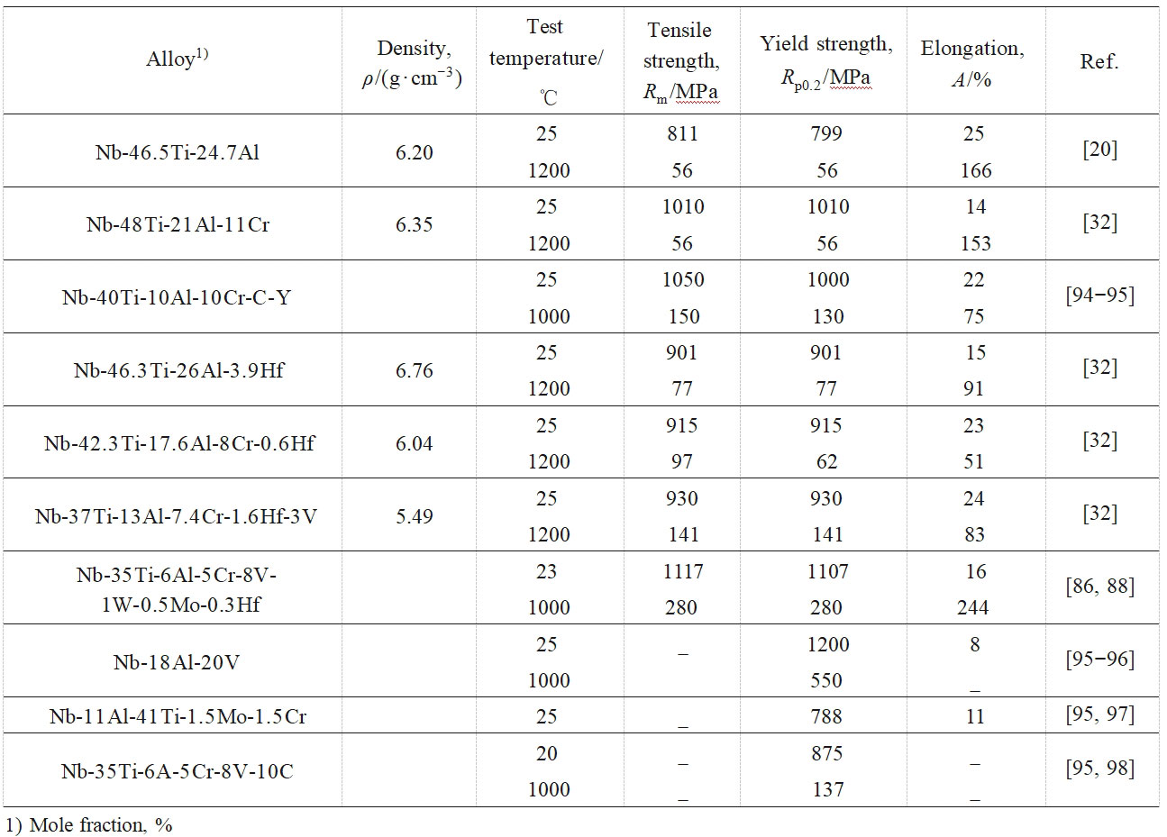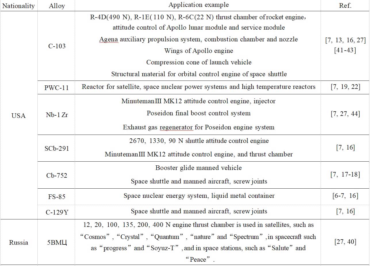 参考文献:航天用高温铌基合金进展|朱宝辉,吴向东,万敏,赵刚,曹艳飞,罗文,李树荣,何季麟-《中国有色金属学报》|优先出版 (ysxbcn.com)