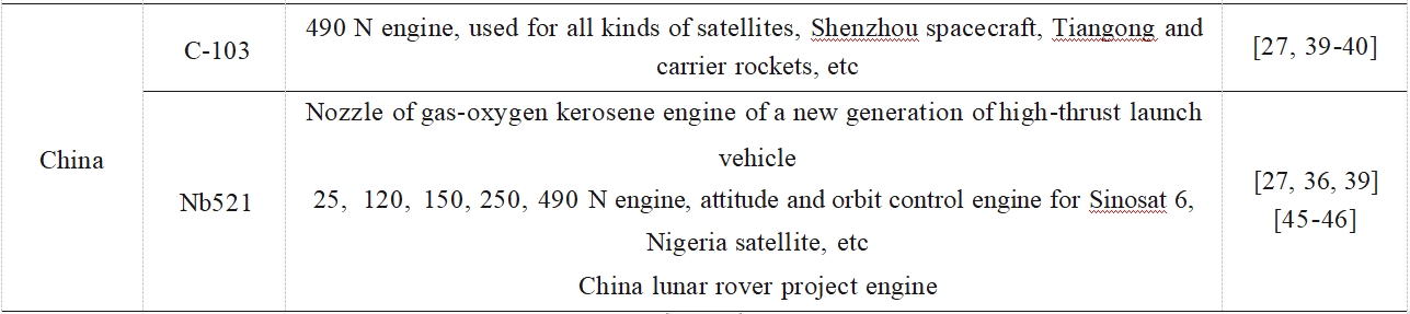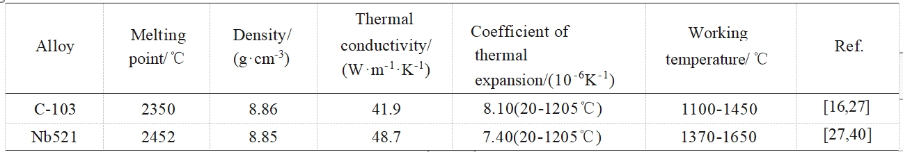 下面对应用较为广泛的C-103、PWC-11、Nb521铌合金及在研的低密度铌合金进展分述如下。