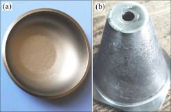 宁夏东方钽业股份有限公司(简称OTIC)先后研制了Nb-40Ti-15Al、Nb-40Ti-10Cr、Nb-40Ti-20Cr和Nb-40Ti-10Cr-10A1等多种合金,对合金的微合金化工艺及B元素对合金晶粒的细化作用进行了研究[102−103],形成了Nb-Ti-Al-Cr和Nb-Ti-Al-Zr两个系列的新型低密度铌合金,并具备生产直径30-150mm合金棒材和(1~3)mm×500mm×500mm的板材的生产能力。图14所示为Nb-Ti-Al-Cr-M3和Nb-Ti-Al-Zr-M8板材在室温下进行冲压和旋压实验的部件实物。近年来,在原有的基础上又研制了Nb-Ti-Al-Mo-W-Zr铌合金。赵红运等[104]对低密度Nb-Ti-Al-Mo-W-Zr铌合金的热变形行为及微观组织演变进行了研究,获得了新型低密度铌合金高温变形的流动应力曲线和本构方程。刘彦昌等[105]对Nb-Ti-Al-Mo-W-Zr铌合金板材的退火工艺进行研究,认为该合金在900~950℃退火可以获得良好的综合性能。