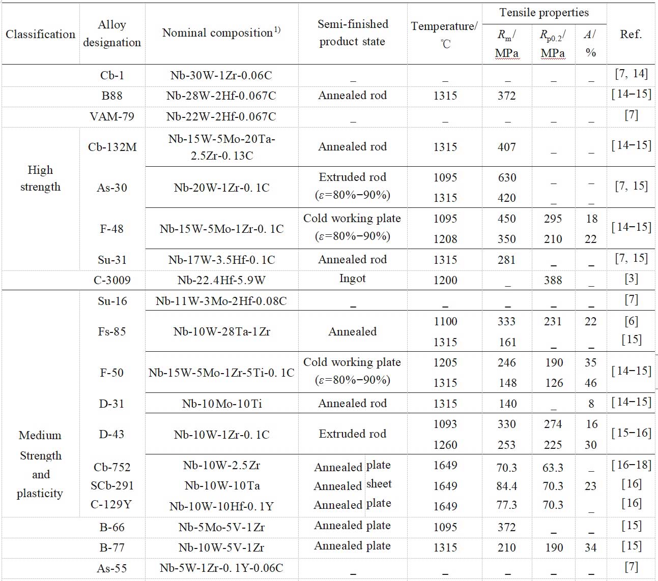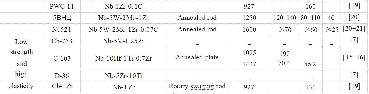 表 1 各种强度的铌合金