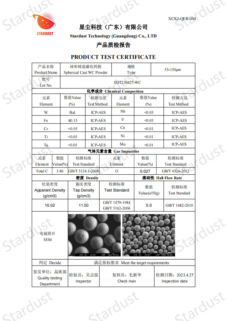- 电子封装:在电子封装行业,球形碳化钨粉也用于提高器件的性能和耐久性。