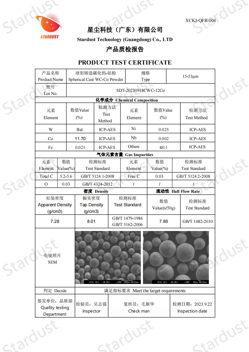 球形铸造WC-Co合金粉末是由碳化钨(WC)和钴(Co)组成的合金,广泛应用于硬质合金材料的制造,尤其是在切削工具、耐磨零部件等领域。